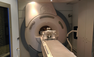 The MRI machine has a maximum table load capacity of 159 kilograms and a horizontal travel distance of 244 centimeters. The table height is adjustable, ranging from a minimum of 49 centimeters to a maximum of 96.5 centimeters.