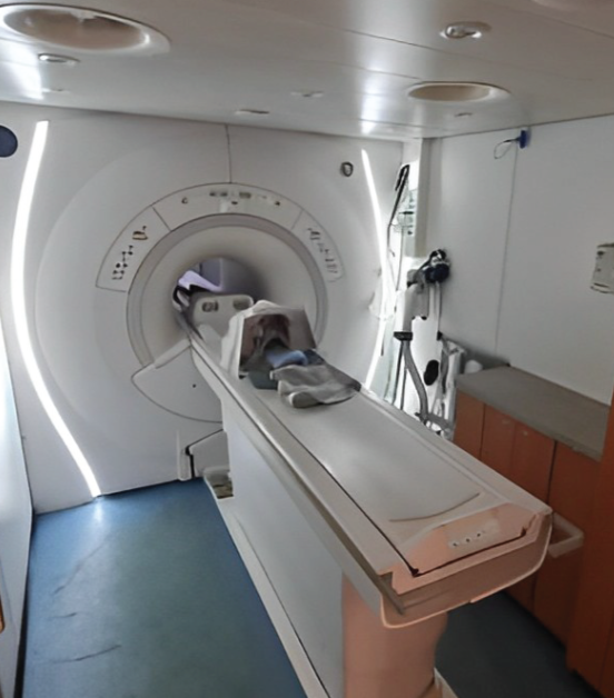 The MRI system features a 1.5 Tesla magnetic field generated by a GEMS LCC 1.5T (CXK4) magnet, operating at a frequency of 63.86 MHz. The magnet boasts a 60 cm bore diameter, providing ample space for patients.
